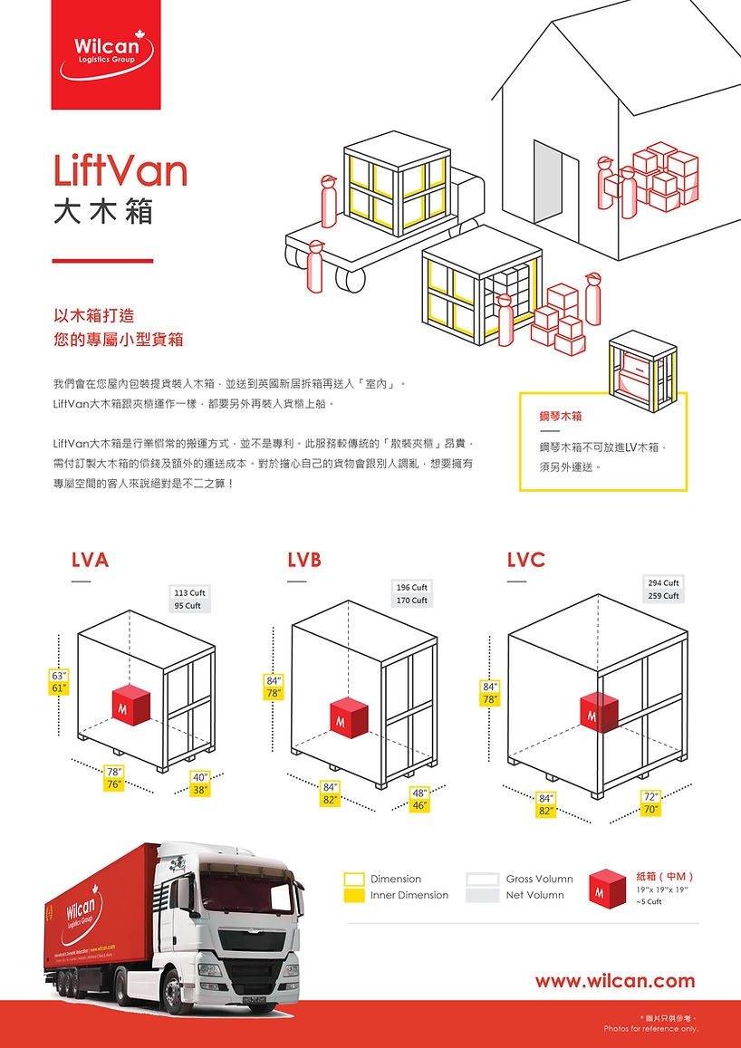 LiftVan is a dedicated wood-crated box to store your goods. As with the other two services, we will pack and pick up the goods in your house, pack them into a wooden box, send them to your new home, uncrate, and place into your new home. LiftVan shipments are packed and held in our warehouse until we fill up a container bound (Groupage) weekly.